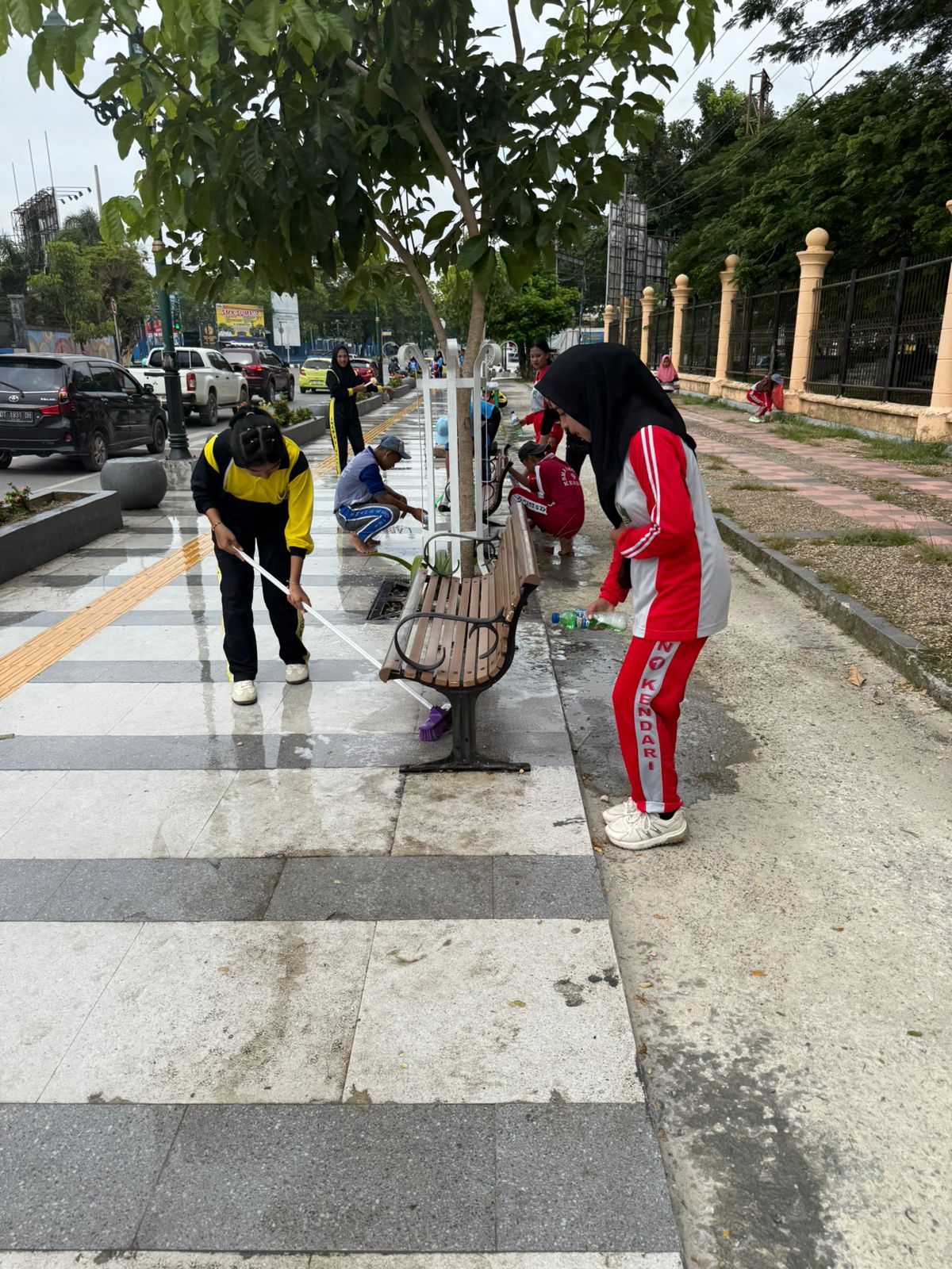 Pagi itu, tangan-tangan yang biasa menggenggam tali pengibar bendera justru akrab dengan sikat dan air sabun.