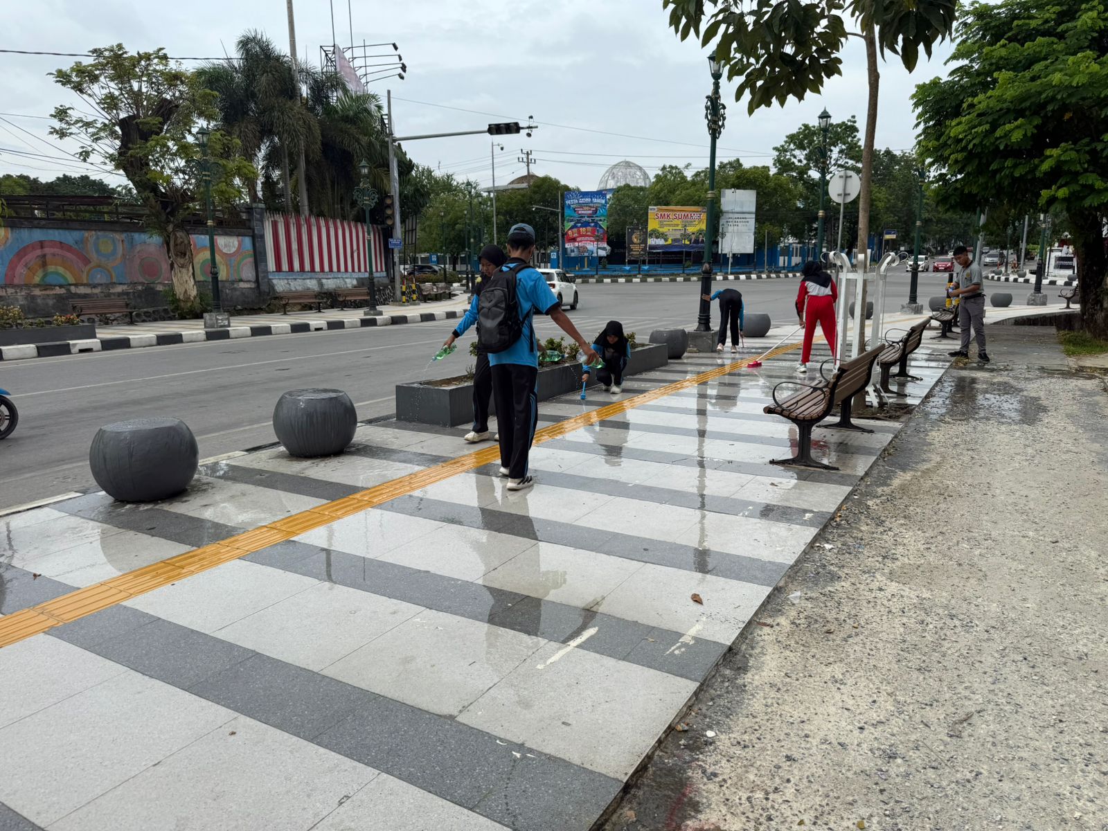 Gerakan bertajuk “MTQ Berapi-api” (Bersih dan Rapi) ini bukanlah sekadar aksi sapu-sapu formalitas. Ada presisi dan disiplin yang diterapkan, layaknya mereka menjaga langkah di lapangan upacara. Panitia membagi area secara detail; setiap kelompok bertanggung jawab penuh atas kebersihan trotoar sepanjang empat tiang lampu.
