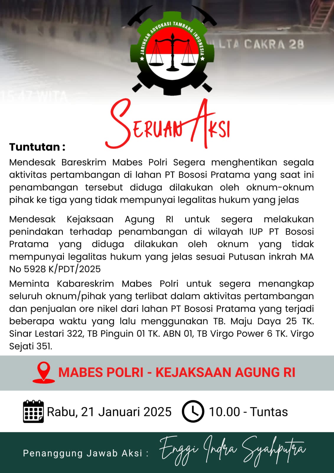 Aksi ini merupakan buntut dari dugaan maraknya aktivitas pertambangan ilegal yang dilakukan oleh pihak ketiga di dalam wilayah Izin Usaha Pertambangan (IUP) PT Bososi Pratama, Konawe Utara.