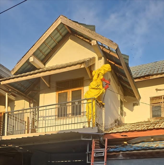 Petugas menyisir setiap sudut atap untuk memastikan tidak ada lagi koloni yang tertinggal.