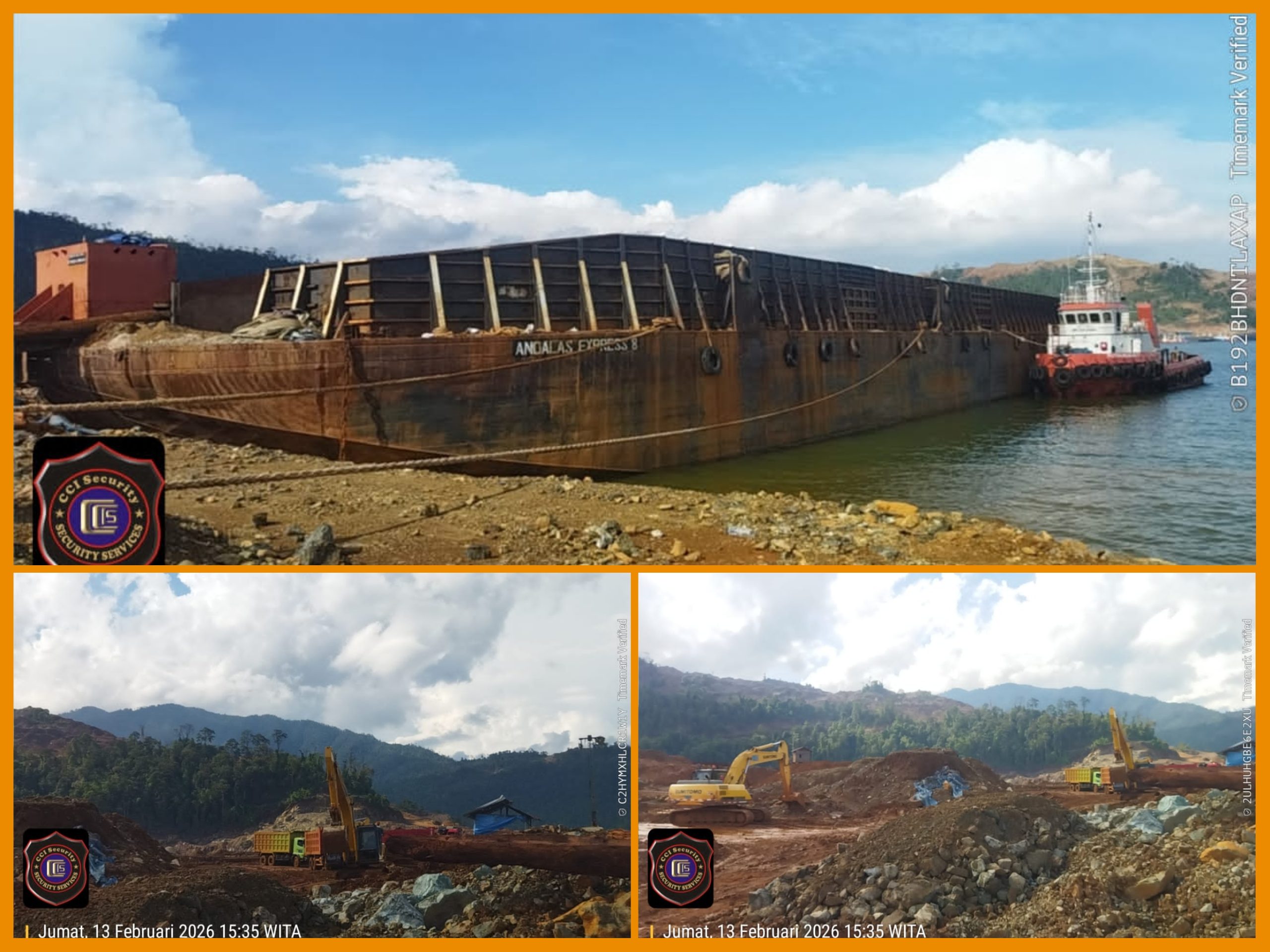 Pantauan Perdetiknews.com pada Jumat (13/2/2026) menunjukkan tongkang ANDALAS EXPRESS 8 bersandar di jetty dan siap memulai proses pemuatan. Sebuah tugboat merah-putih terlihat standby untuk menarik tongkang setelah muatan penuh.
