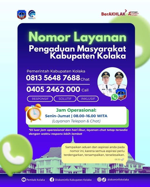 Meski memiliki jam operasional untuk layanan telepon, Pemkab Kolaka menginformasikan bahwa layanan pesan WhatsApp tetap terbuka di luar jam kerja maupun hari libur. Meskipun waktu respon akan menyesuaikan, kanal tersebut tetap menampung aspirasi warga agar tidak ada suara yang terabaikan.