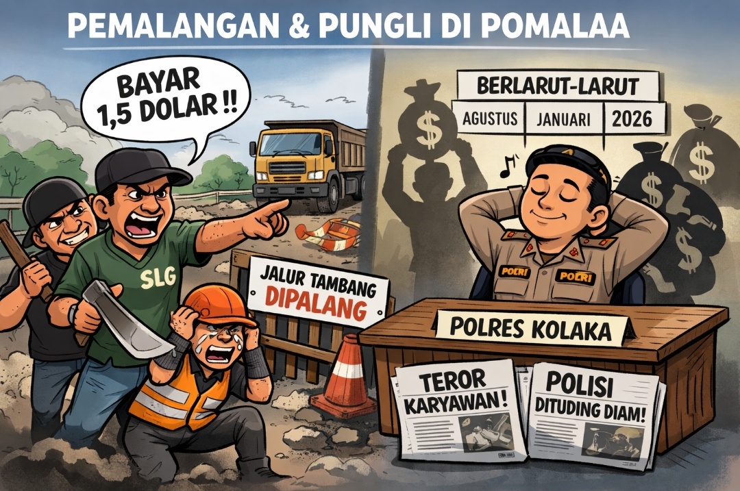 Kolaka – Dugaan pemalangan jalur tambang dan praktik pungutan liar (pungli) di Kecamatan Pomalaa, Kabupaten Kolaka, Sulawesi Tenggara, kembali menjadi sorotan publik.