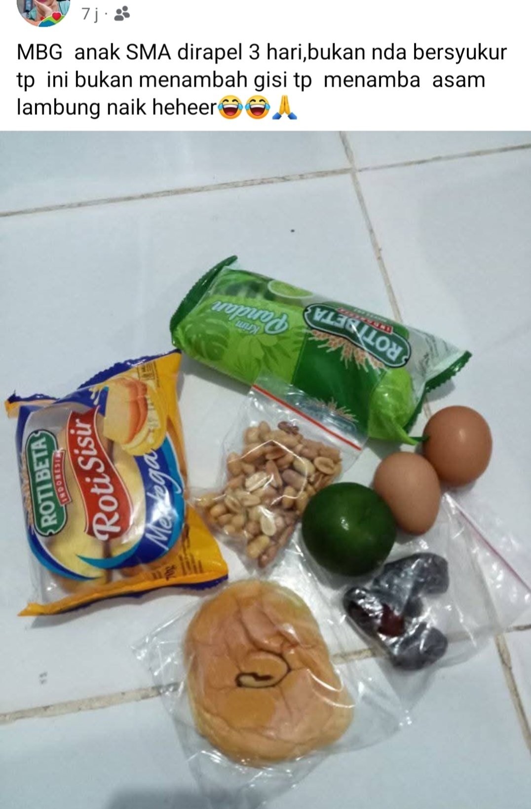 Dalam postingan yang beredar, terlihat sejumlah makanan seperti roti, telur, kacang, jeruk nipis, kurma, dan minuman kemasan.