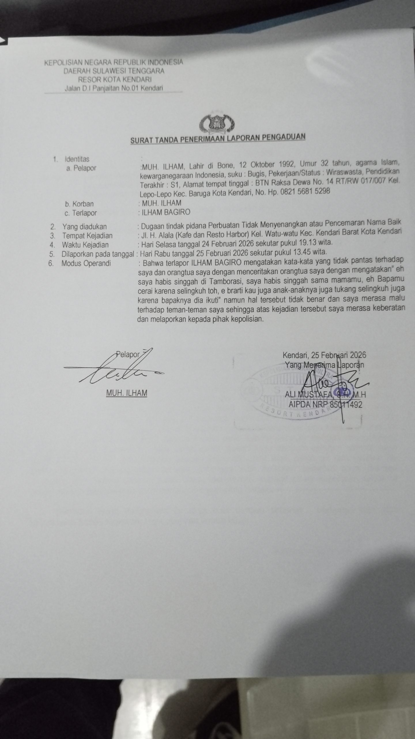 Kendari — Seorang warga berinisial IM melaporkan influencer TikTok berinisial IB ke Polresta Kendari atas dugaan penghinaan verbal usai acara gathering PT Pertamina Patra Niaga Regional Sulawesi di Kendari, Sulawesi Tenggara, Selasa malam (24/2/2026).