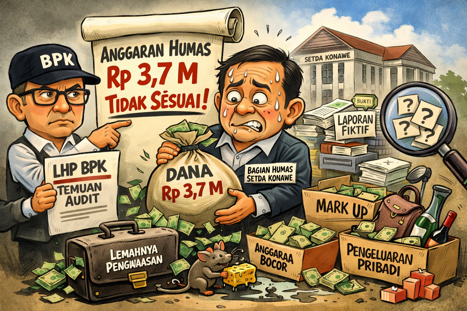 Di sisi lain, Pemerintah Kabupaten Konawe didesak melakukan evaluasi total terhadap tata kelola anggaran di seluruh instansi.