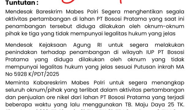 IUP Tak Lagi Sakti Tanpa AHU, Didit Hariadi Minta Polda Sultra Hentikan Penjarahan Nikel di PT Bososi Pratama
