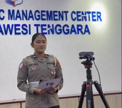 Melalui pantauan kamera CCTV yang terintegrasi di ruang RTMC, Kompol Sri Endang memberikan laporan langsung mengenai titik-titik kepadatan lalu lintas di wilayah Sultra, khususnya Kota Kendari, pada jam sibuk pagi hari.
