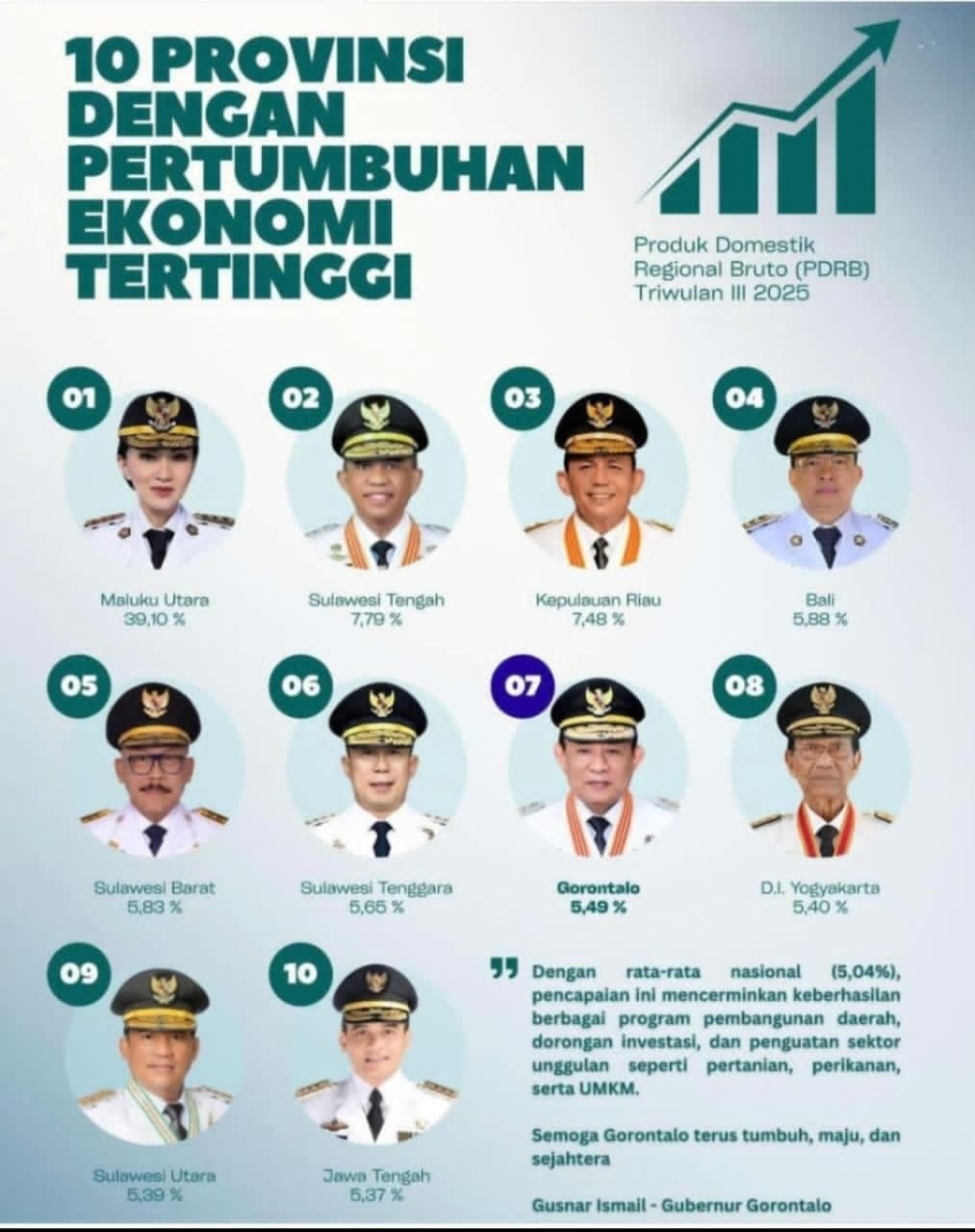 Daftar Pertumbuhan Ekonomi 10 Besar Nasional 2025 (Persen)