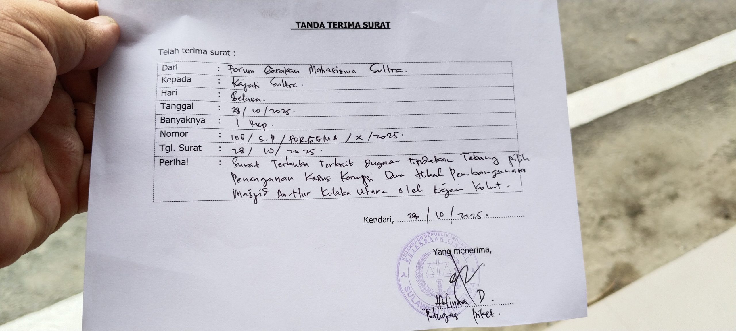 Ketua Umum Forgema Sultra, Abdul Rahman, menyatakan penetapan tiga tersangka—termasuk Sekretaris Daerah (Sekda) Taufiq S.—belum menjawab tuntas rantai pertanggungjawaban di balik mangkraknya proyek rumah ibadah ini.