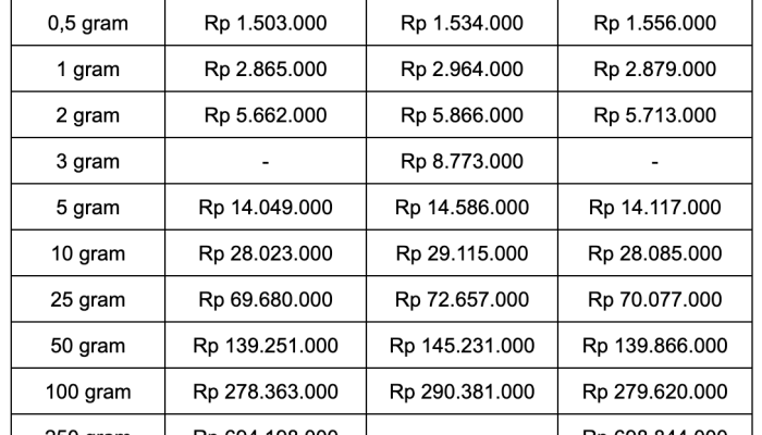 Jakarta – PT Pegadaian (Persero) telah merilis daftar harga emas untuk perdagangan hari ini. Bagaimanakah perkembangan harga emas di Pegadaian selengkapnya?