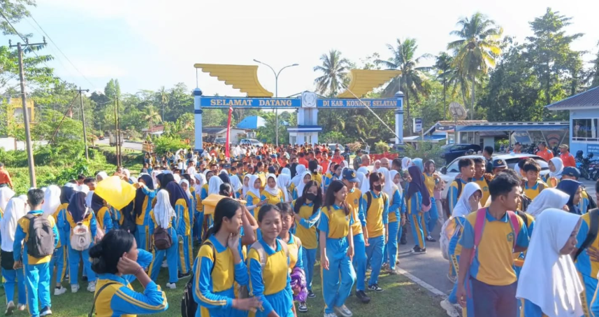 Konawe Selatan – Semangat gotong royong terpancar di sepanjang jalan protokol Desa Ambaipua menuju Bandara Haluoleo. Personel Lanud Haluoleo bersama warga dan ratusan pelajar tingkat SD hingga SMP turun ke jalan menggelar kerja bakti massal, Kamis (2/4/2026).