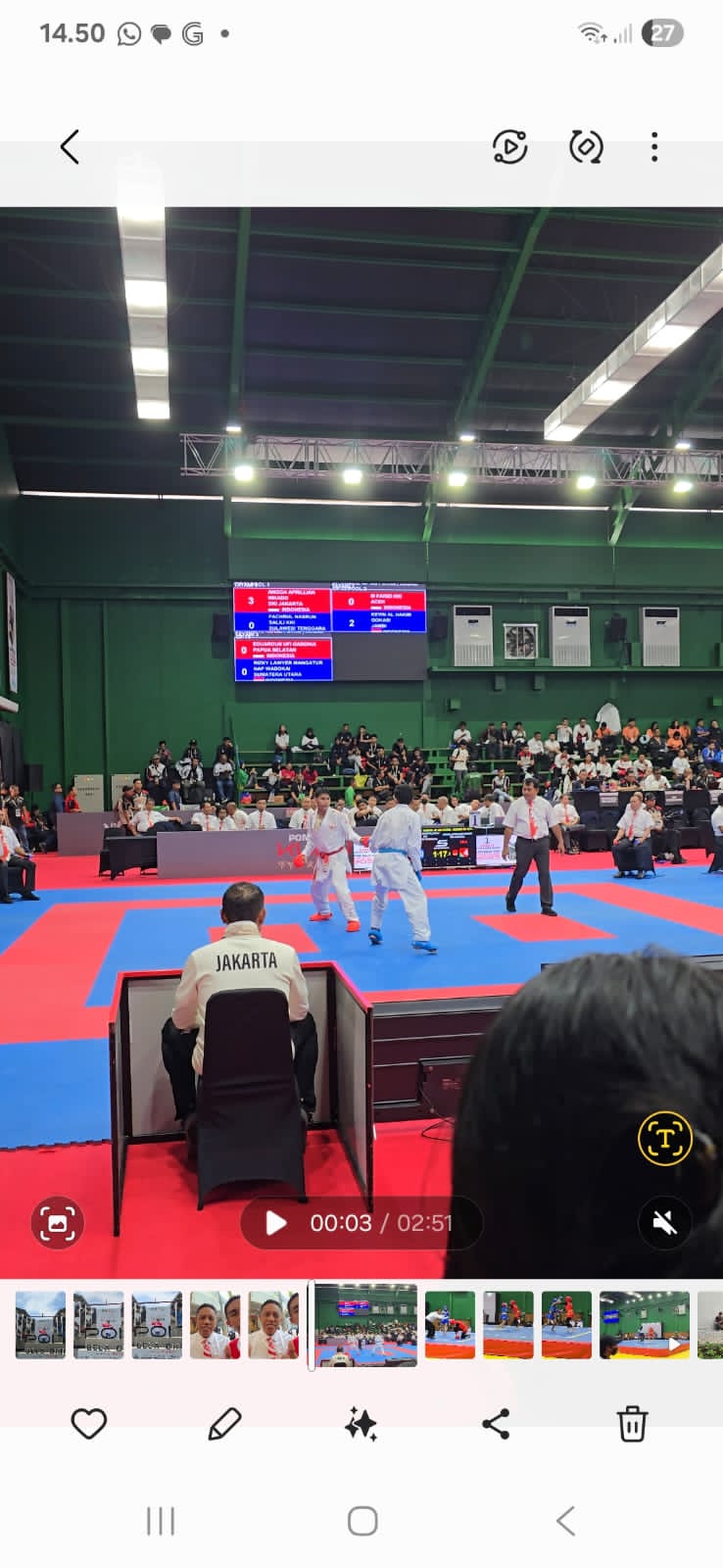 Karateka Sultra sempat menunjukkan harapan saat Asman Herdani berhasil mencatatkan dua kali kemenangan di nomor Kata Perorangan.