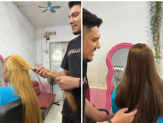 Profesionalitas Teruji: Owner Melan Salon, Syaidul Bachry, terlihat tengah menangani dan memperbaiki rambut pelanggan (kiri) hingga hasilnya kembali memuaskan (kanan). Hal ini menepis isu miring dan membuktikan komitmen Melan Salon dalam menuntaskan keluhan layanan secara profesional.