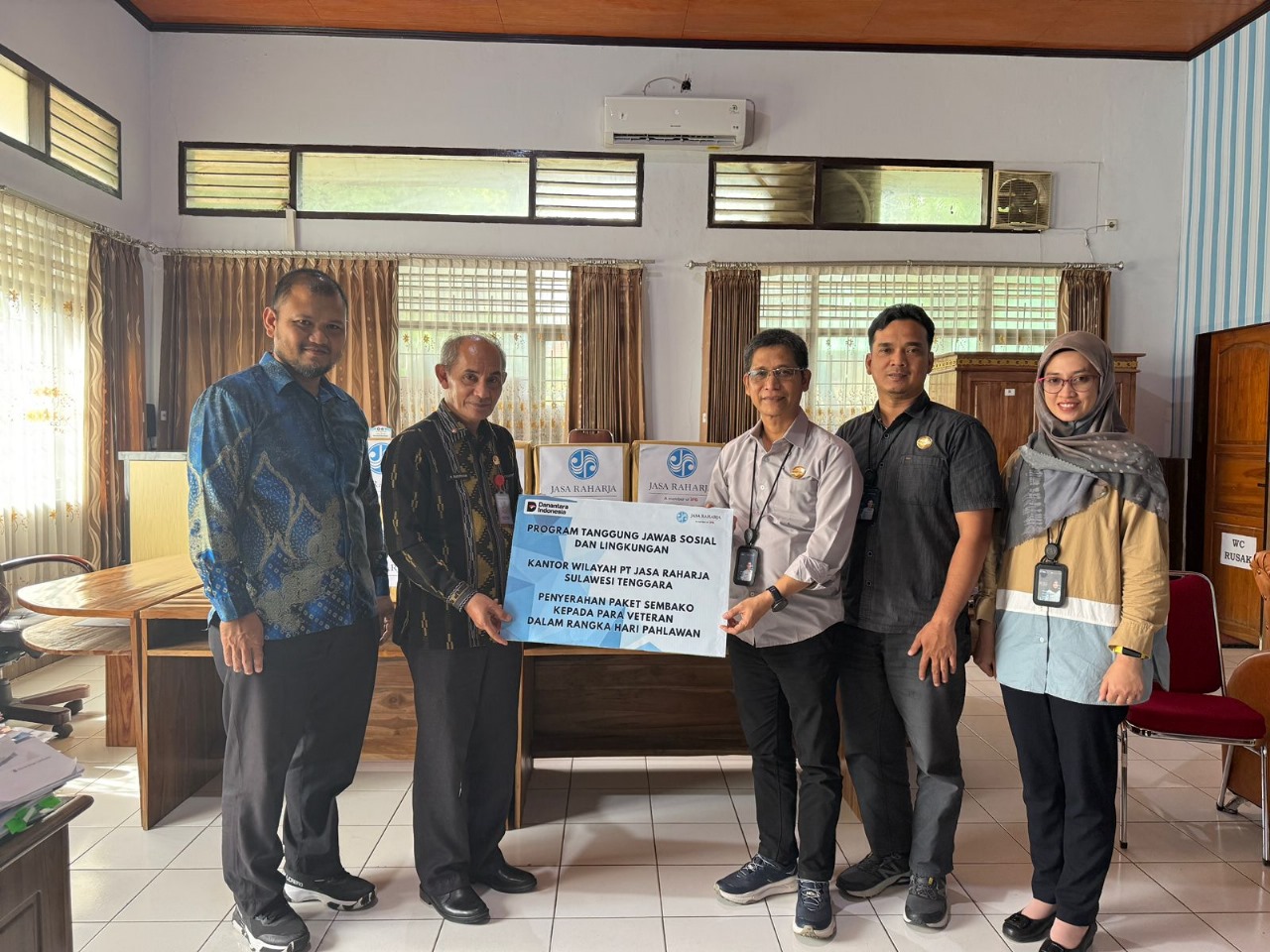 KENDARI – PT Jasa Raharja Kantor Wilayah Sulawesi Tenggara kembali menunjukkan kepedulian sosialnya dengan menyerahkan bantuan paket sembako kepada Dinas Sosial Kota Kendari. Bantuan ini ditujukan sebagai bentuk penghargaan dan rasa terima kasih perusahaan kepada para veteran pejuang kemerdekaan.