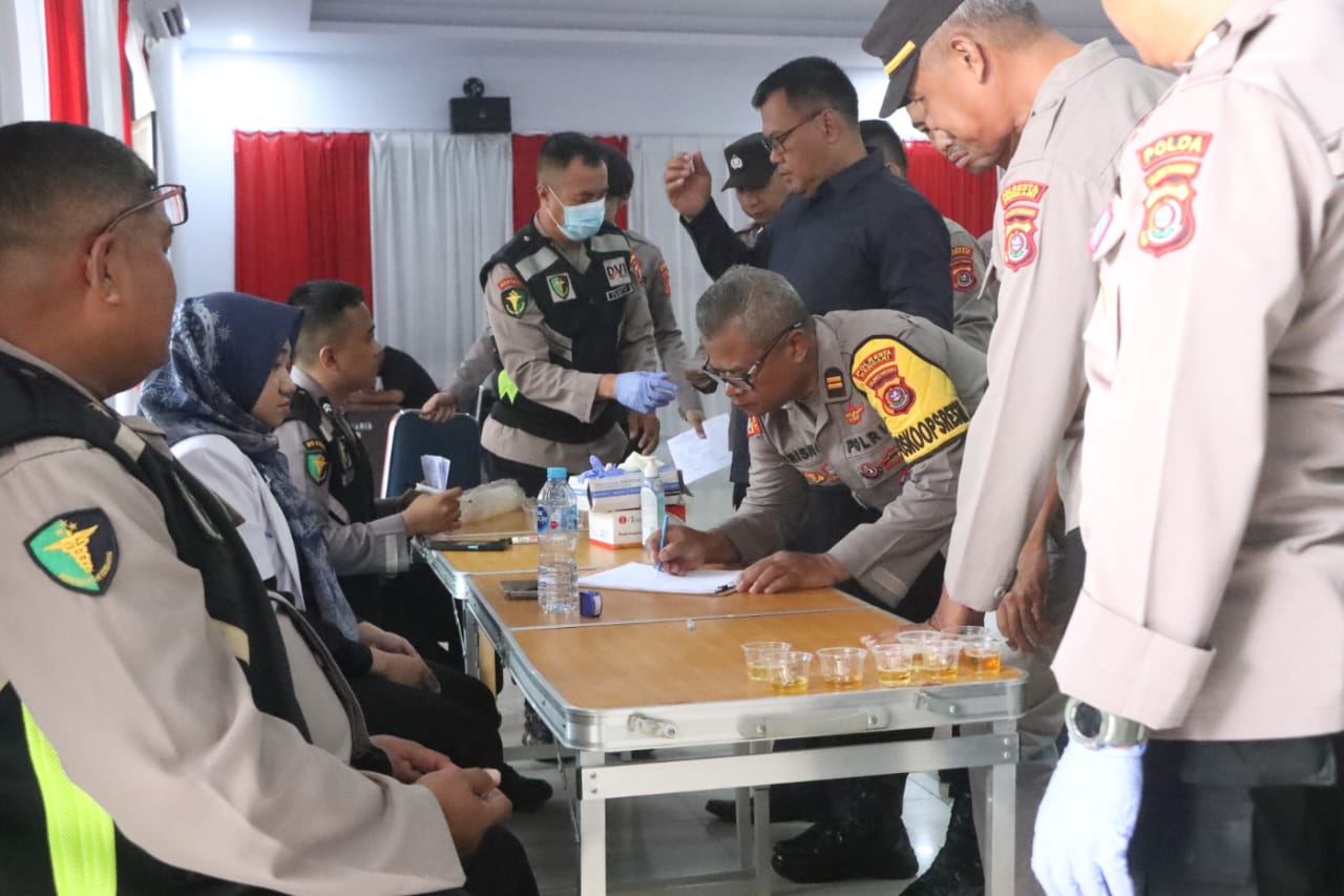 Puluhan anggota kepolisian, baik yang berpakaian dinas maupun seragam operasional, mengikuti tes urine tersebut. Pemeriksaan dilakukan dengan prosedur ketat untuk memastikan tidak ada personel yang terlibat dalam penyalahgunaan narkoba. Hasil tes akan menjadi bagian dari evaluasi disiplin dan etika kepolisian.