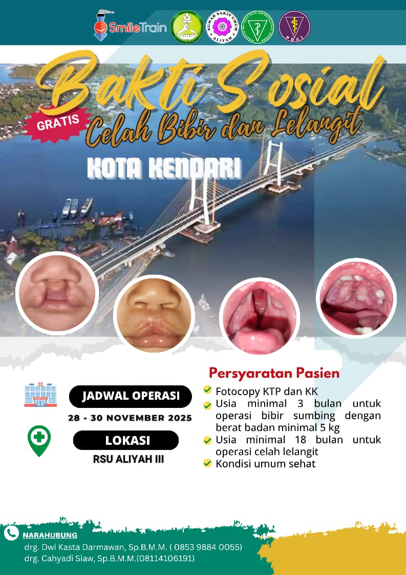 Kegiatan mulia ini merupakan hasil kolaborasi sejumlah lembaga, di antaranya RSU Aliyah 3 Kendari, bekerja sama dengan Smile Train Indonesia, Yayasan Pembina Penderita Celah Bibir dan Langit-langit (YPPCBL) Bandung, Persatuan Ahli Bedah Mulut dan Maksilofasial Indonesia (PABMI) Sulawesi, dan Persatuan Dokter Gigi Indonesia (PDGI) Pengurus Wilayah Sultra.