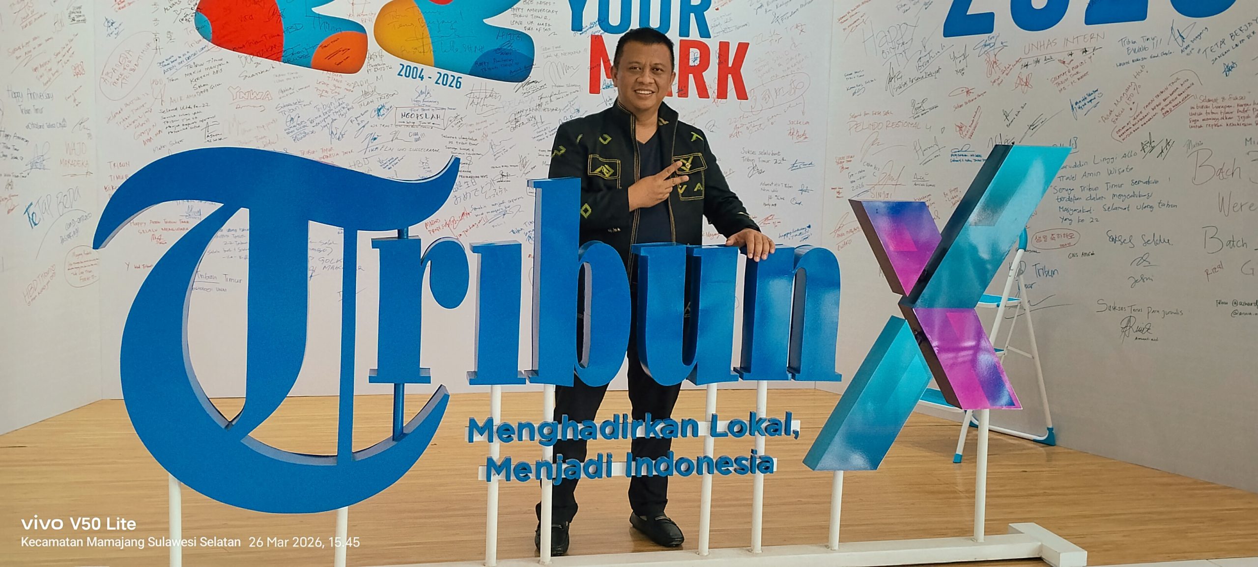 Sambil membubuhkan tanda tangan pada dinding aspirasi “Leave Your Mark”—sebuah kampanye yang merayakan perjalanan 22 tahun Tribun Timur (2004–2026)—Dr. Sofyan menunjukkan dukungannya terhadap eksistensi media lokal yang mampu bersaing di kancah nasional.