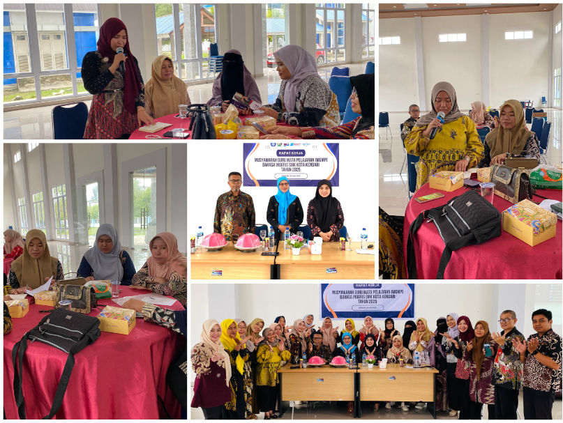 Rapat kerja ini turut dihadiri oleh Dr. Laode Fendi, S.Pd., M.Pd., Pengawas Dinas Pendidikan dan Kebudayaan Provinsi Sulawesi Tenggara, serta seluruh pengurus dan anggota MGMP Bahasa Inggris SMK Kota Kendari. (Foto di atas menampilkan perwakilan panitia inti MGMP Bahasa Inggris SMK Kota Kendari yang berfoto di depan spanduk kegiatan. Foto lainnya mengabadikan momen kebersamaan seluruh peserta Rapat Kerja MGMP Bahasa Inggris SMK Kota Kendari usai acara).