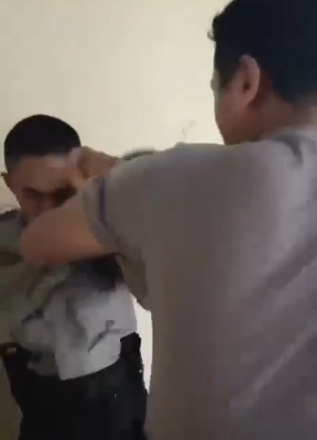 Dalam rekaman yang viral tersebut, seorang anggota polisi tampak berulang kali memukul dan menendang dua siswa yang berdiri pasrah, meskipun salah satu siswa sempat menjelaskan statusnya.